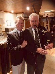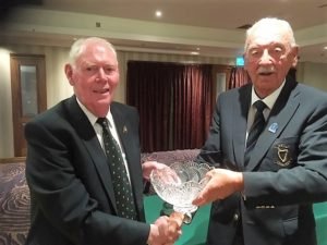 Jim Mc Govern, President of the GUI presenting the John Brett Trophy to Leinster Branch Honorary Secretary, Dom Murphy