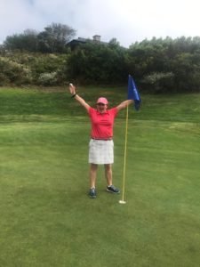 Jodie celebrates her hole in one.