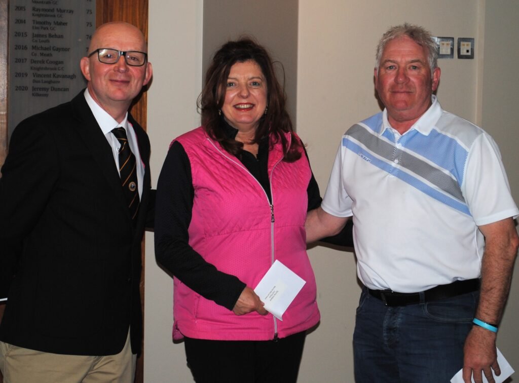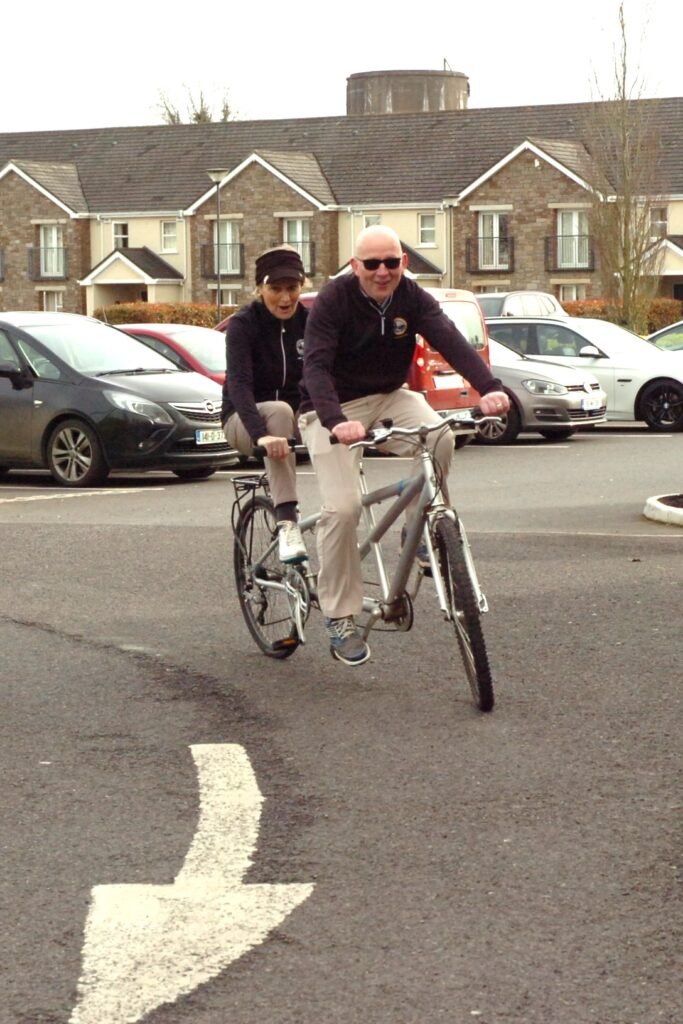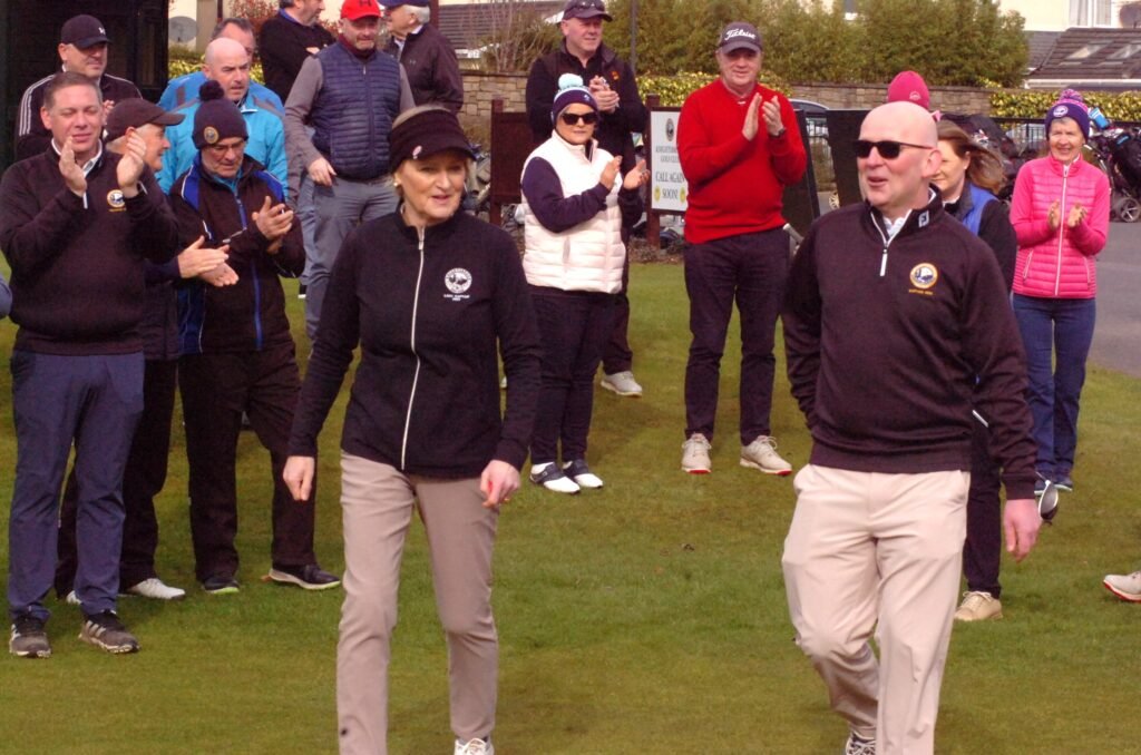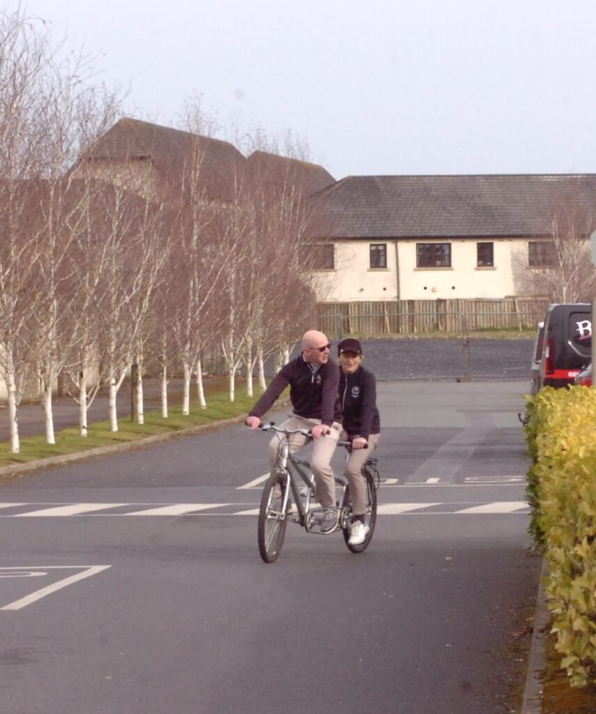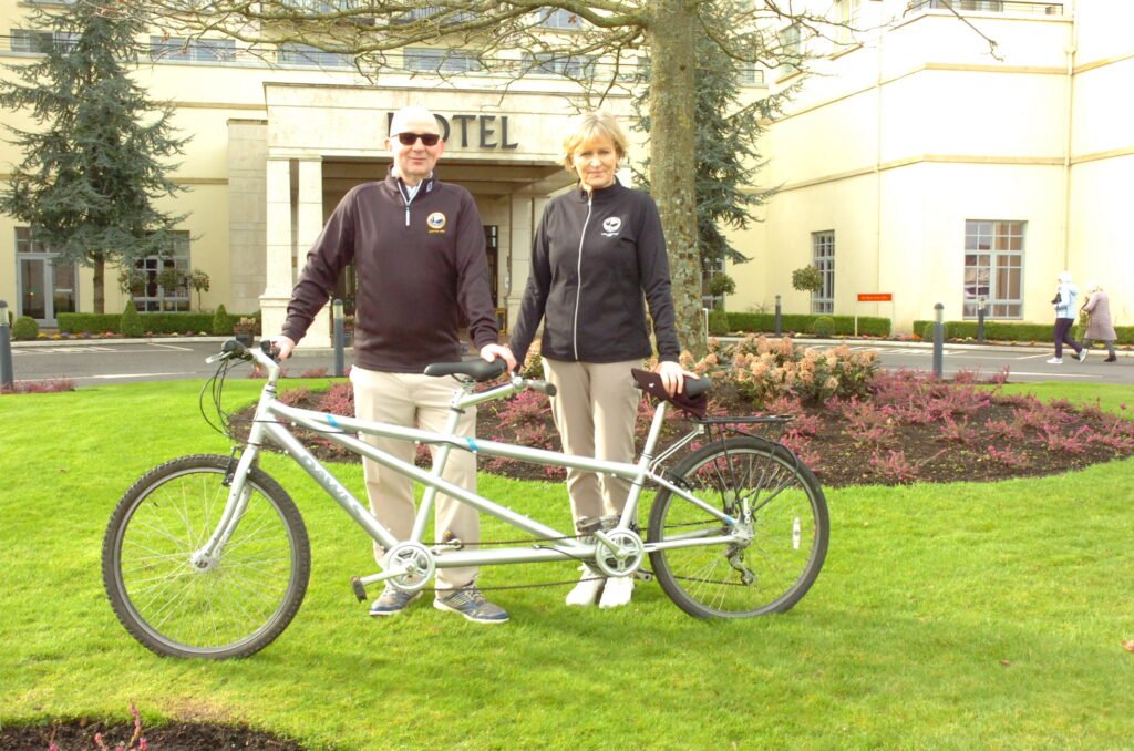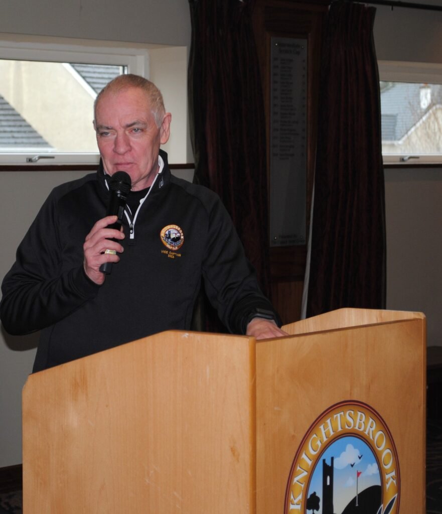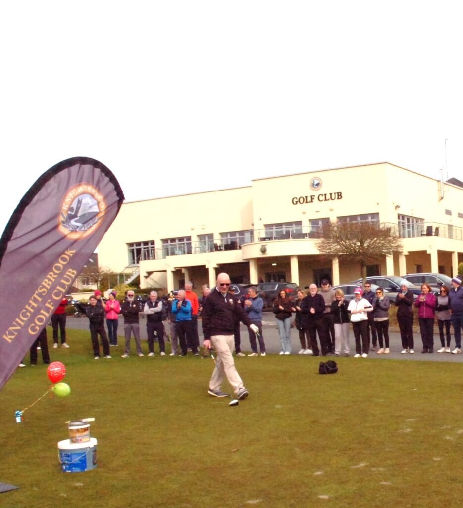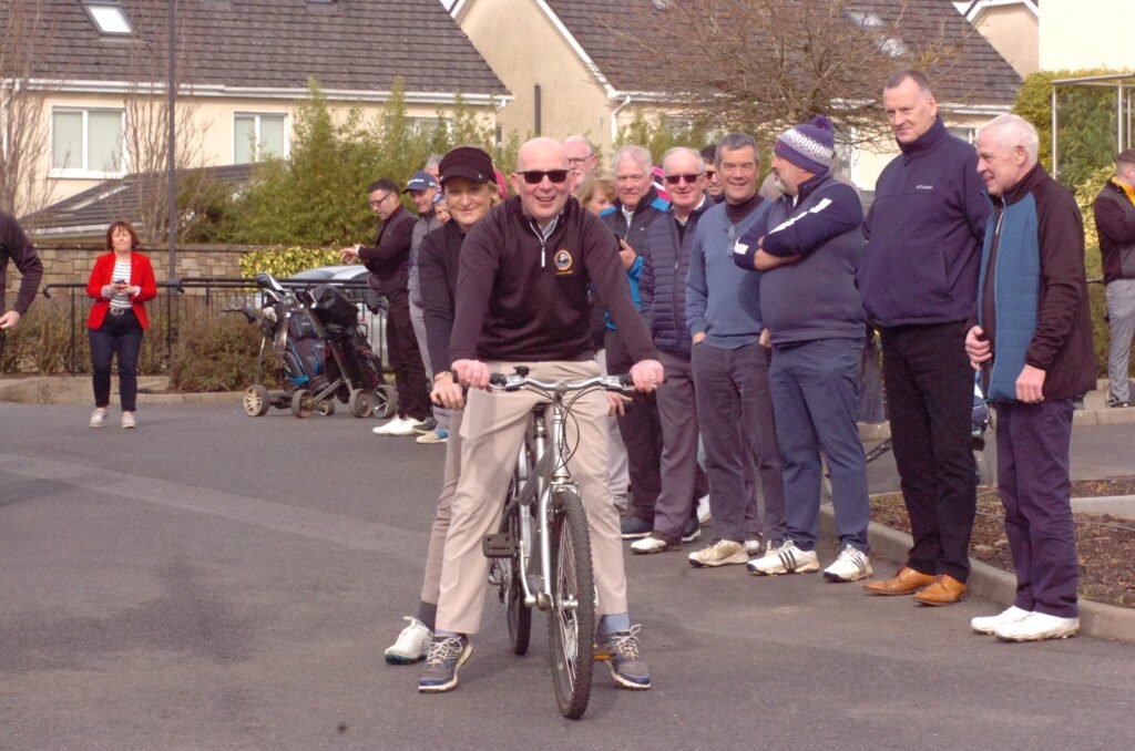 Captains Alan and Marie choose a tandem bicycle to make their grand entrance to their 2023 Drive-In at Knightsbrook Golf Club on Mother’s Day. Having planted the traditional tree to commemorate their big day, Captain Alan and Lady Captain took to the Tandem and gracefully manoeuvred their shinning machine through the waiting guard of honour formed by the members near the first tee. Earlier, members gathered for tea/coffee and scones provided by Mr Peter Igoe. Presentations were made to both captains to mark the occasion by vice captains, Leonard and Mary and the traditional bottle of bubbly was popped to celebrate the beginning of the golfing year. Once the formalities were completed, Marie Gordon split the fairway with a very good drive followed by a slightly wayward but respectable drive from Alan Codd. After the 9-hole scramble, members enjoyed a lovely meal and social evening followed by the presentation of prizes for the spring league and the Drive-In scramble. Both captains thanked the members for attending and wished all members a very enjoyable golfing year. They also thanked Mr Igoe, the ground, shop and catering staff for their work throughout the year. Prior to the social event a minute’s silence was observed as a mark of respect to the club’s late member Mr Paul Sharp who sadly passed away a few weeks prior to the Drive-In. (see tribute elsewhere on this site)