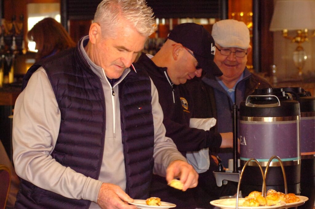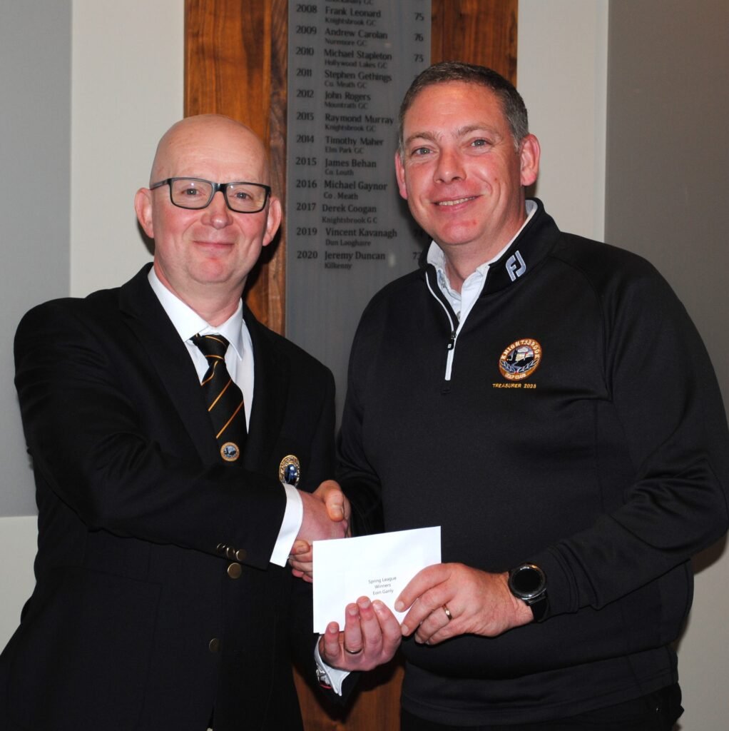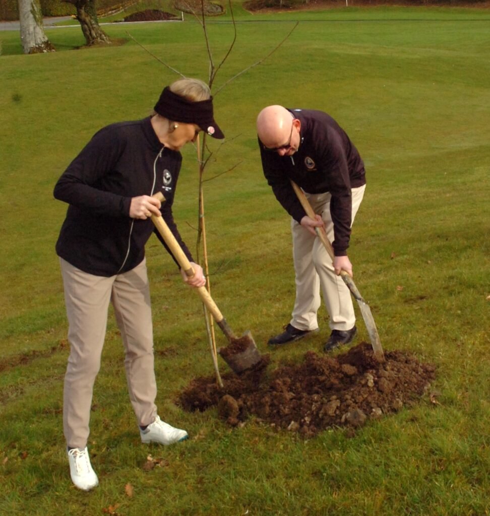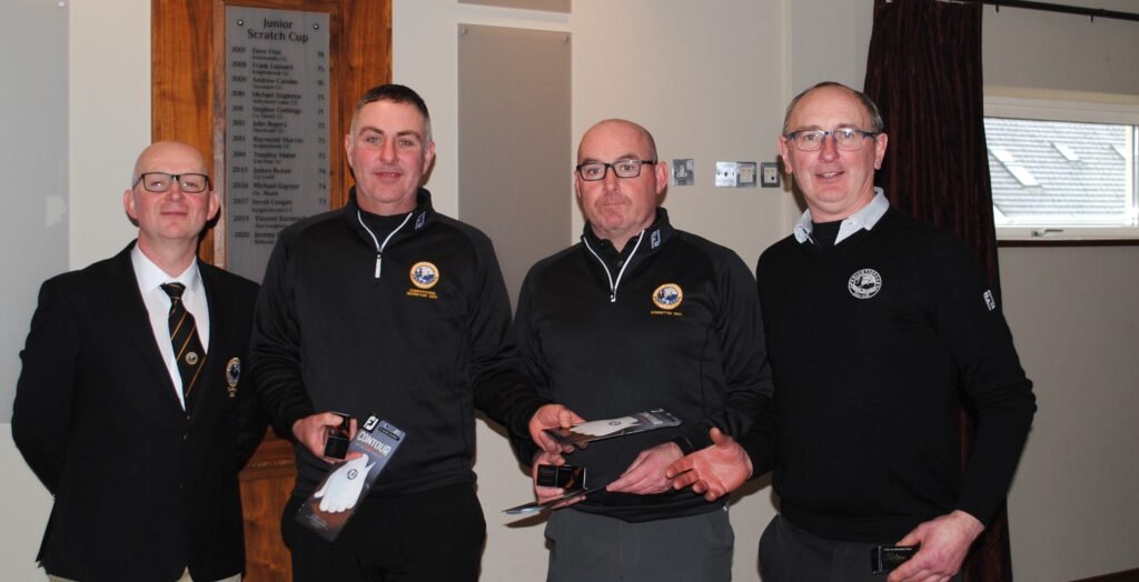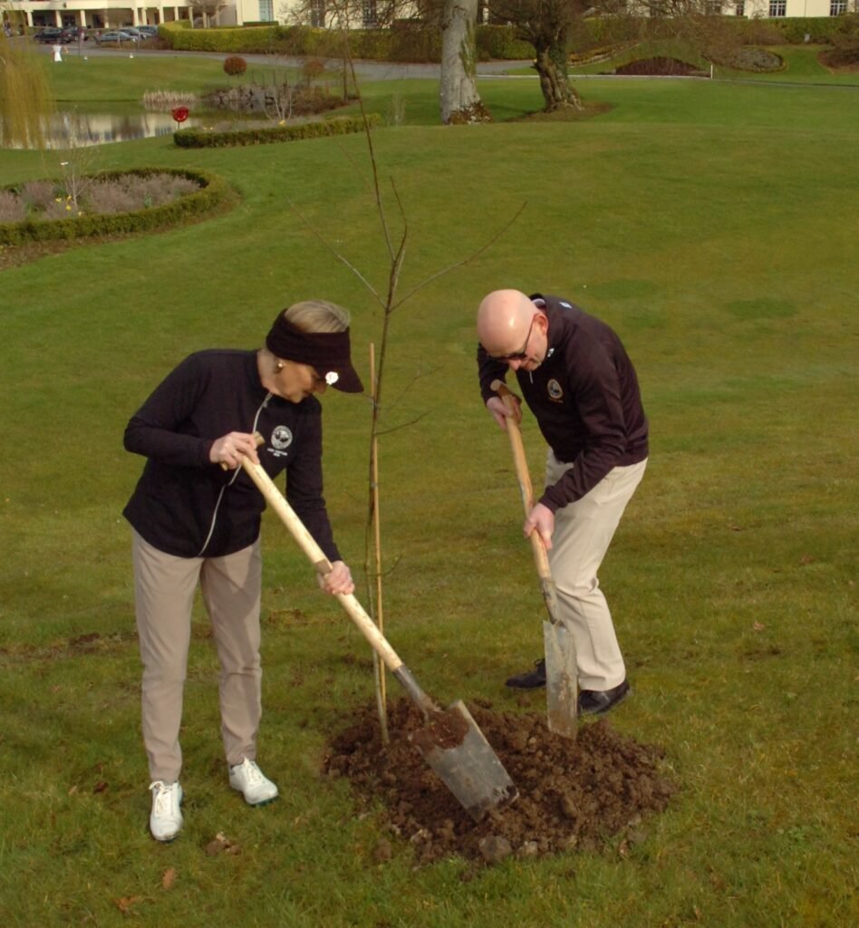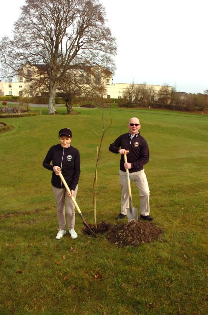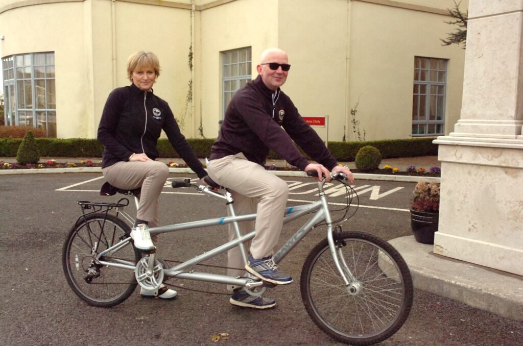 Captains Alan and Marie choose a tandem bicycle to make their grand entrance to their 2023 Drive-In at Knightsbrook Golf Club on Mother’s Day. Having planted the traditional tree to commemorate their big day, Captain Alan and Lady Captain took to the Tandem and gracefully manoeuvred their shinning machine through the waiting guard of honour formed by the members near the first tee. Earlier, members gathered for tea/coffee and scones provided by Mr Peter Igoe. Presentations were made to both captains to mark the occasion by vice captains, Leonard and Mary and the traditional bottle of bubbly was popped to celebrate the beginning of the golfing year. Once the formalities were completed, Marie Gordon split the fairway with a very good drive followed by a slightly wayward but respectable drive from Alan Codd. After the 9-hole scramble, members enjoyed a lovely meal and social evening followed by the presentation of prizes for the spring league and the Drive-In scramble. Both captains thanked the members for attending and wished all members a very enjoyable golfing year. They also thanked Mr Igoe, the ground, shop and catering staff for their work throughout the year. Prior to the social event a minute’s silence was observed as a mark of respect to the club’s late member Mr Paul Sharp who sadly passed away a few weeks prior to the Drive-In. (see tribute elsewhere on this site)
