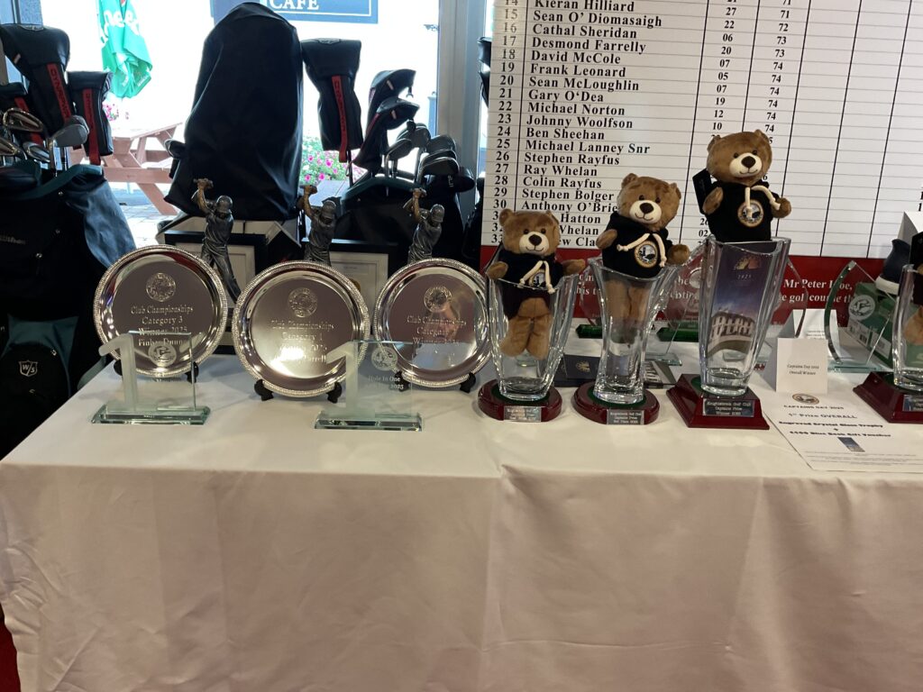 Special acknowledgements were made by both captains in their after-dinner speeches to Mr. Igoe for his relentless support, Sean Dempsey for his continued photographic work, Ronan and the greenkeeping staff for their diligence, and the men’s and ladies’ committees for their tireless efforts throughout the year. Kate, Ben, Keith, and Abby were also thanked for their work in the pro shop, ensuring that everything runs smoothly during the golfing year.