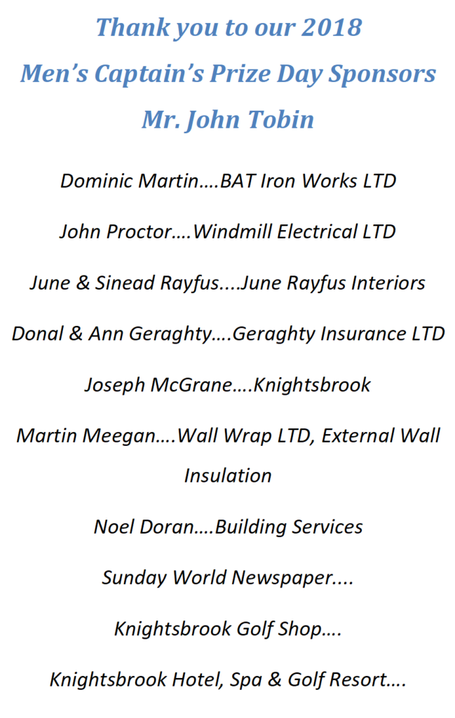 John Tobin, Captain’s Prize Day Sponsors 2018