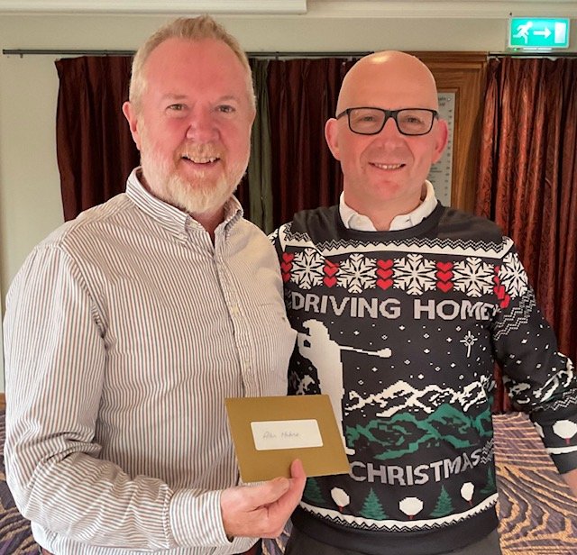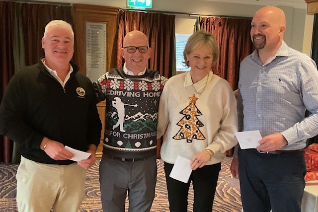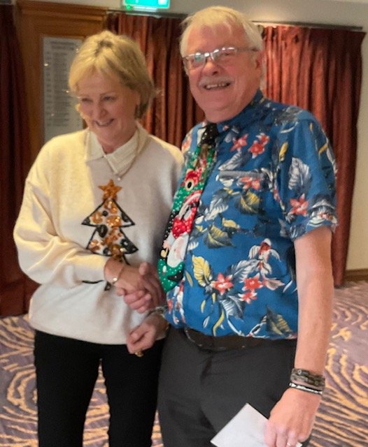 A variety of hampers, monthly medals and club matchplay presentation were made. Colin Rayfus received the Golfer of the Year Award. Both captains thanked their committees for their dedication during a very successful golfing year in 2023. Deceased members were remembered also and Marie and Alan wished incoming committees every success in 2024. Peter Whelan won the Christmas Jumper competition followed closely by Bernie McCormack who dressed up as a Christmas tree.
