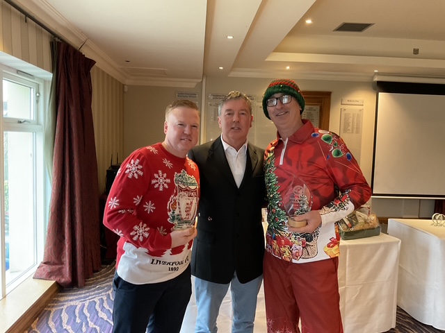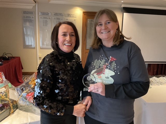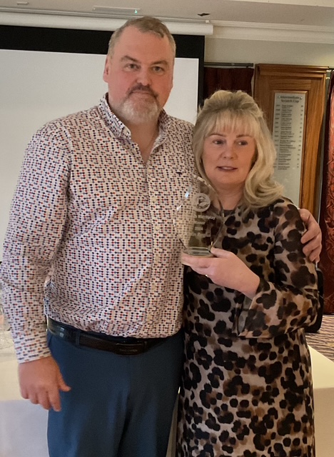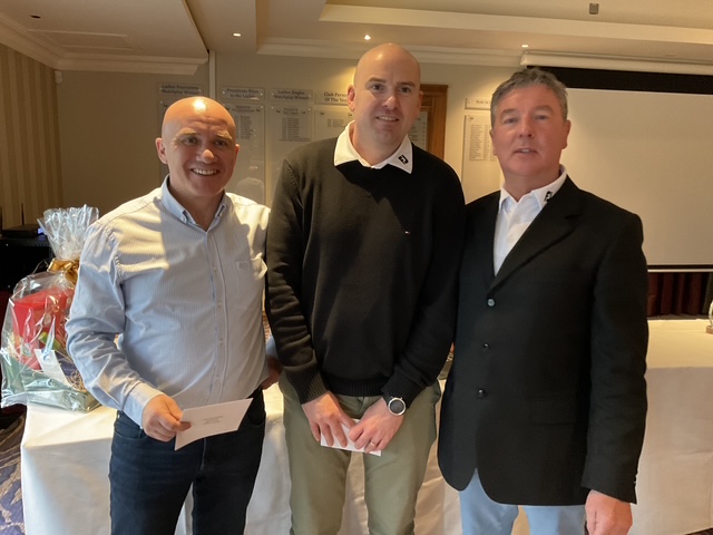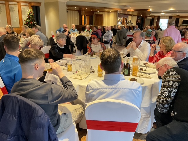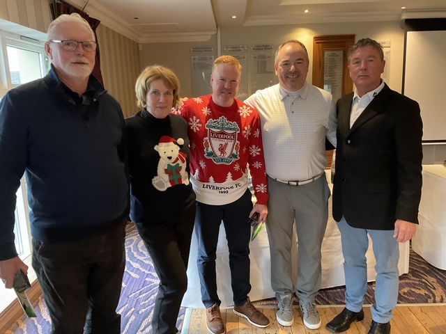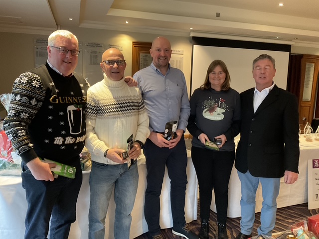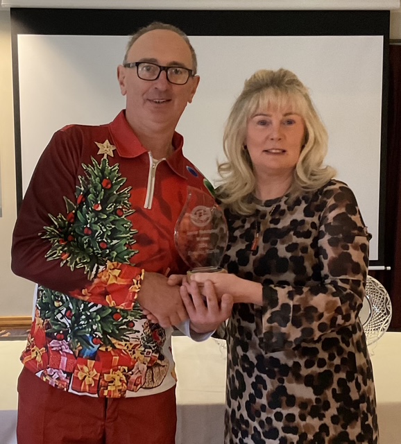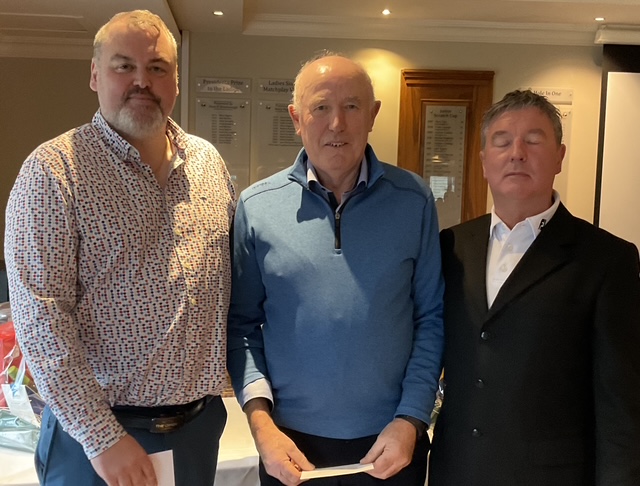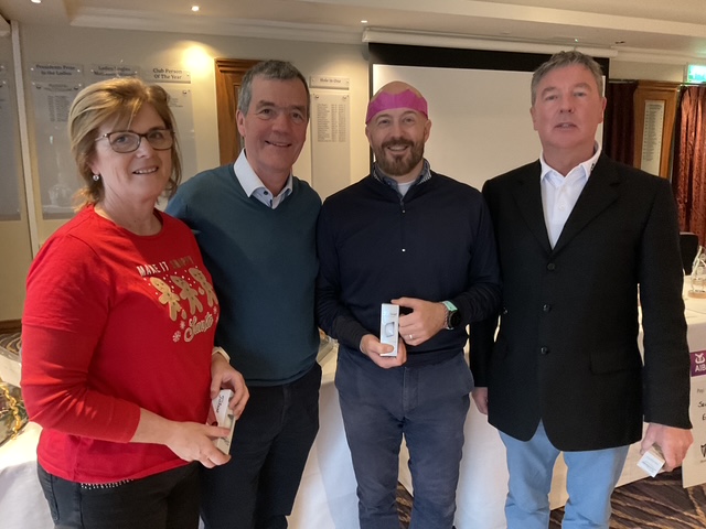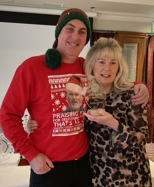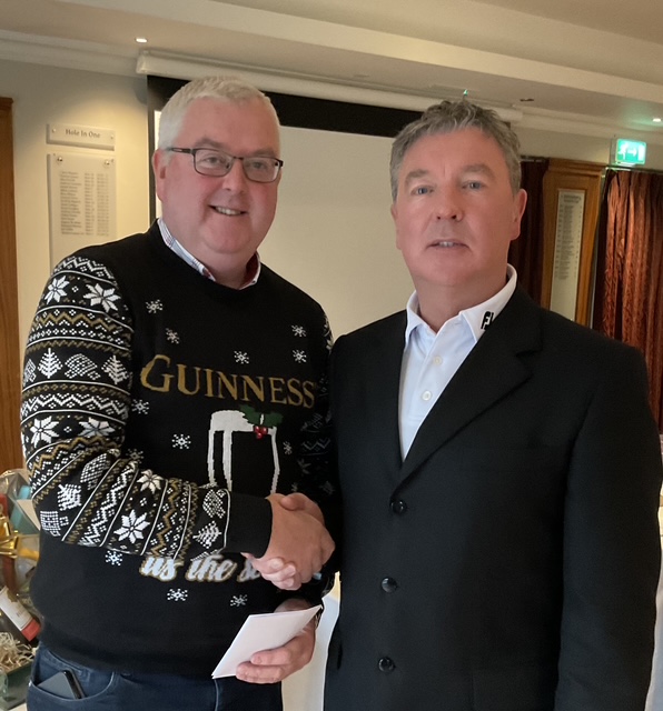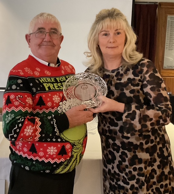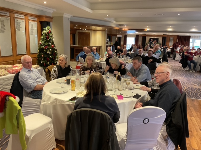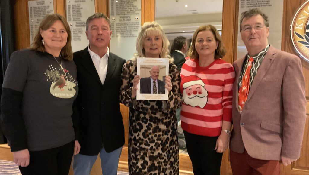 Knightsbrook Golf Club Annual Christmas Presentation night was tinged with great sadness as Vice Captain Will Murray remembered members who have passed away over the last 12 months. He said “2024 was a particularly sad year for the club, losing our 2024 Captain, Leonard Flynn , two former captains Dessie Keegan Liam McMenamin, who also served as President and long-time member Jimmy Black”. Will also remembered relatives of current members who passed away during the year. Brid Flynn, wife of Leonard and members of the Flynn family were guests of honour at the Club’s Christmas Lunch and Presentation night. Brid presented a cheque for E7615 to Meath Hospice Homecare, proceeds of Leonard’s charity classic organised only weeks before he passed away. She also presented Leonard’s Captain”s Prize 2024 to Frank Leonard. The members presented Brid with a photographic memorial book recording Leonard’s time as an officer and Captain of Knightsbrook Golf Club.