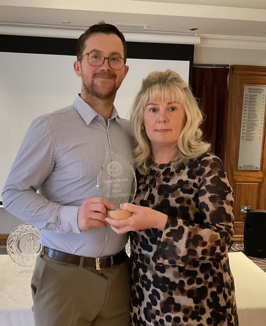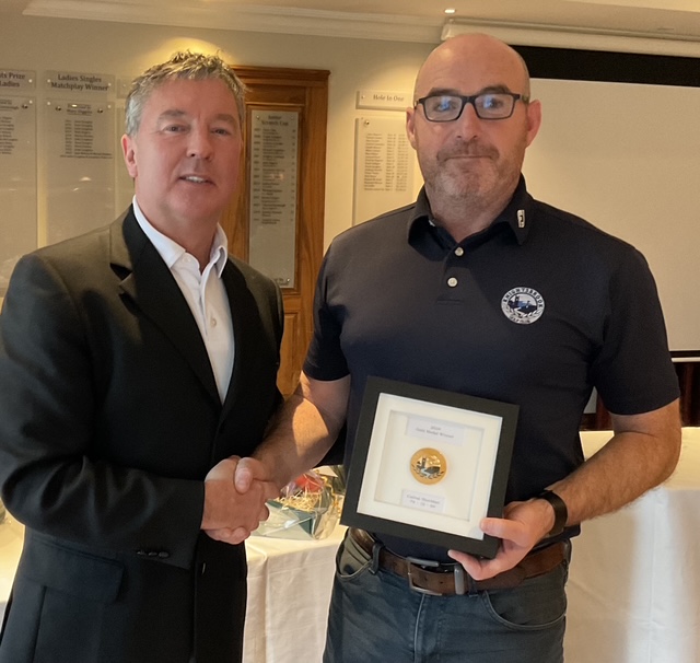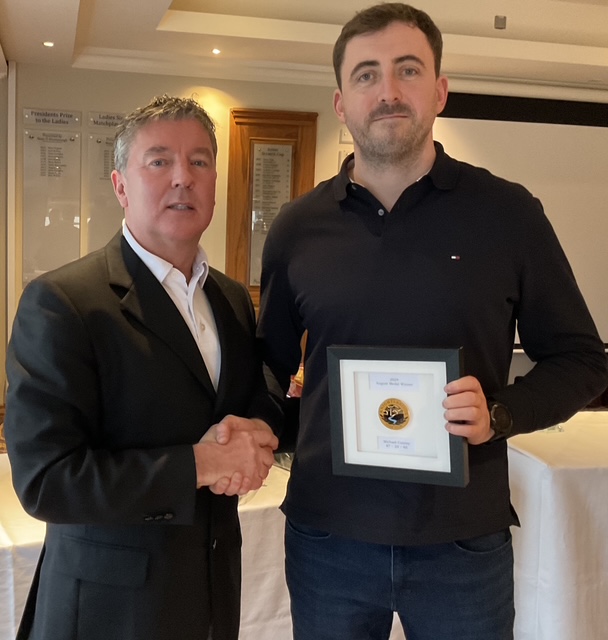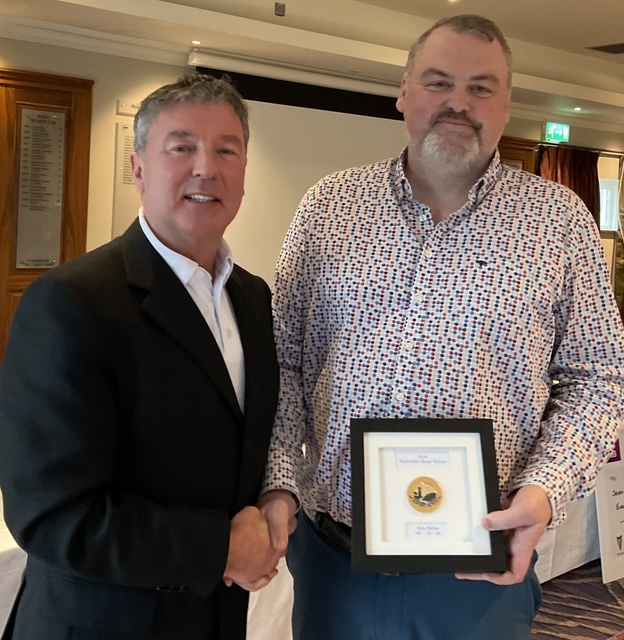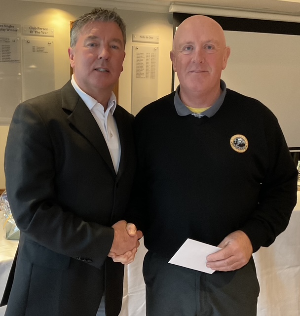 Peter Whelan, Club Person of the Year receives his award from newly elected Captan, Will Murray