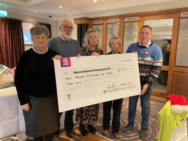 Evelyn O Shea, Paul Smith Treasurer, Knightsbrook Golf Club, Brid Flynn, Miriam Kiernan, Treasurer Meath Hospice Homecare and Owen Ganly, Secretary, Knightsbrook Golf Club.