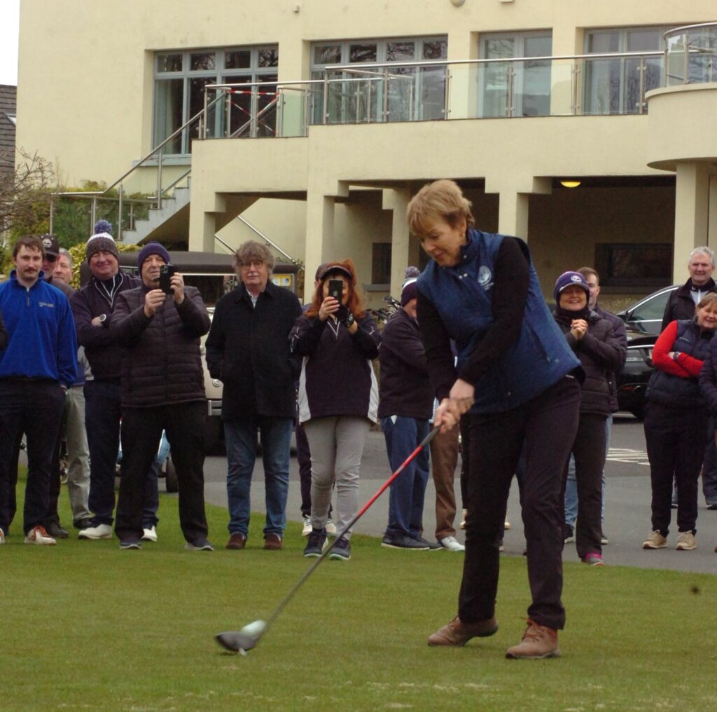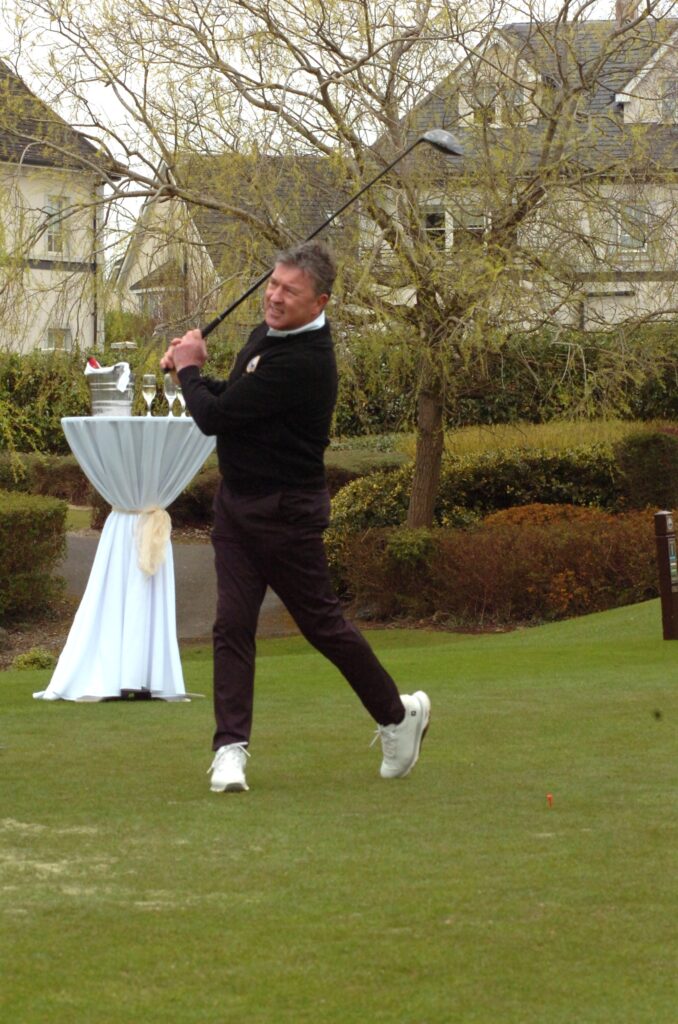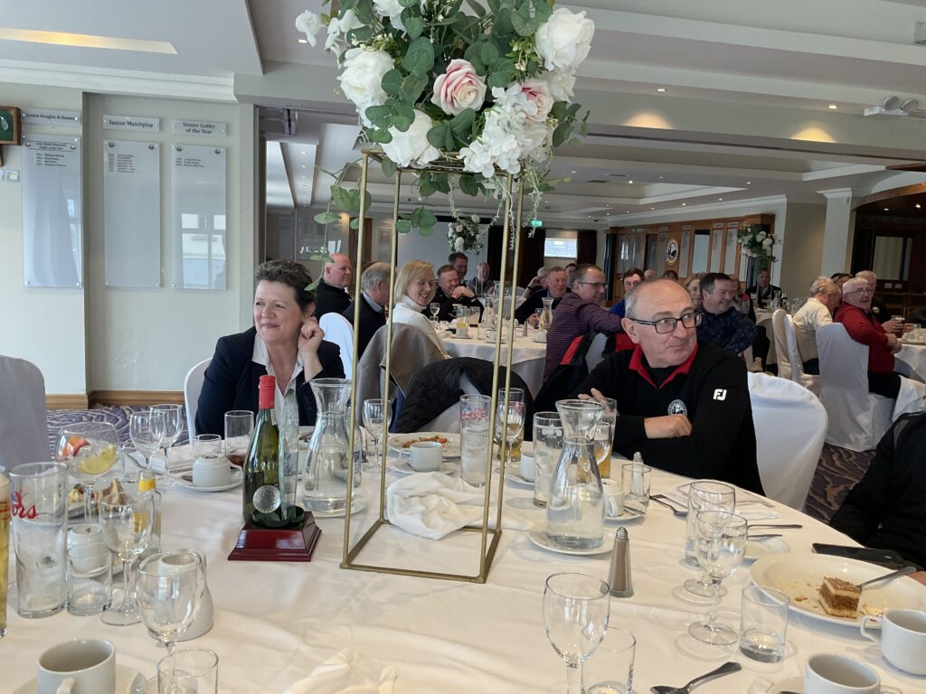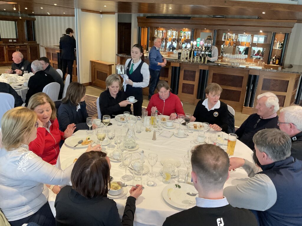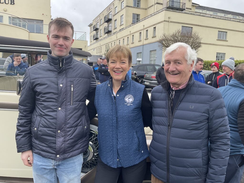 There was a great turnout of family, friends, and members to see Captains Will Murray and Jane Molony tee off the 2025 golfing year at their Captains’ Drive-In on Sunday, March 23rd. They made a grand entrance in a beautiful Regent vintage car, chauffeured by Dominic Martin. Before teeing-off, both captains planted a tree to mark the occasion and were toasted and presented with mementos of their big day. Both captains acquitted themselves well, Captain Will’s drive straying a little off course to the right while Jane struck her tee shot straight down the middle!. A nine-hole scramble competition was followed by a lovely lunch and social evening. Spring League prizes were presented and Drive-In competition winners received their prizes also.