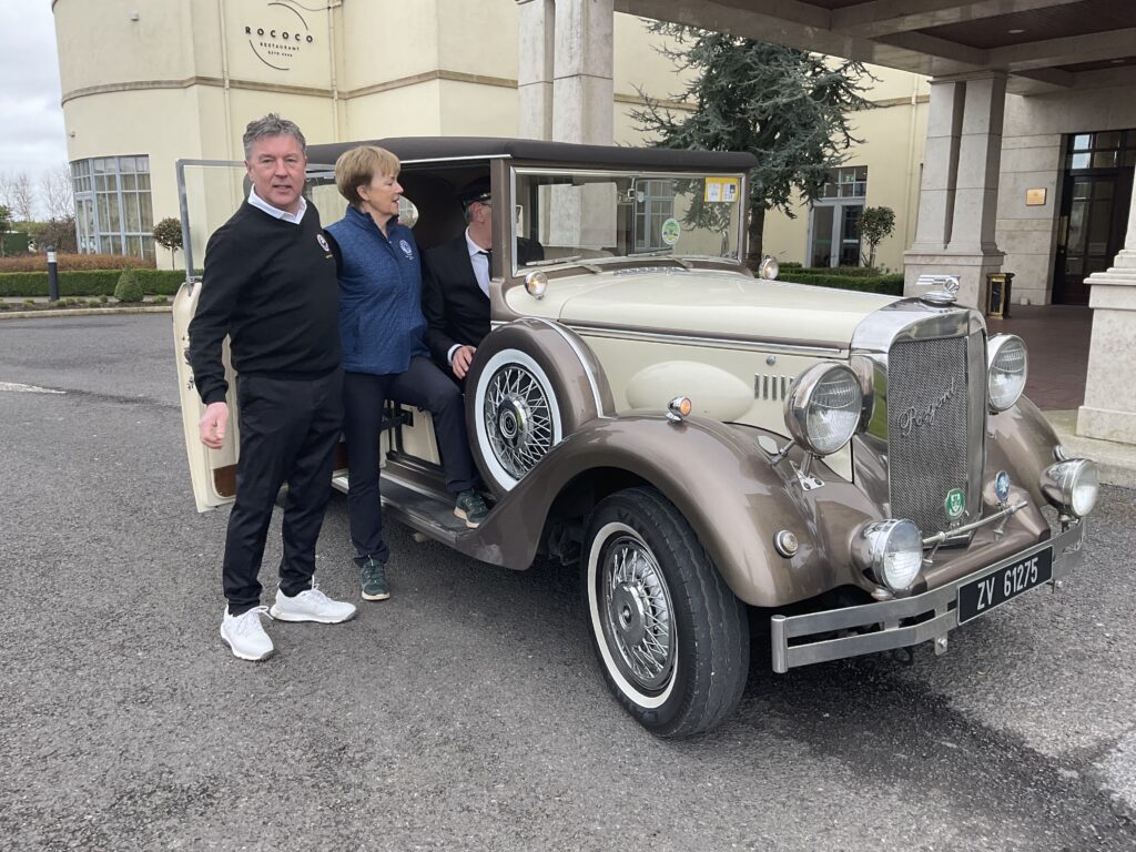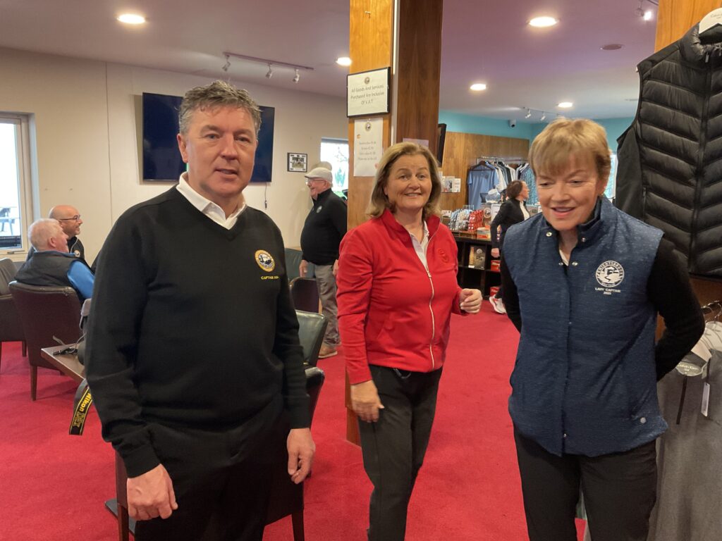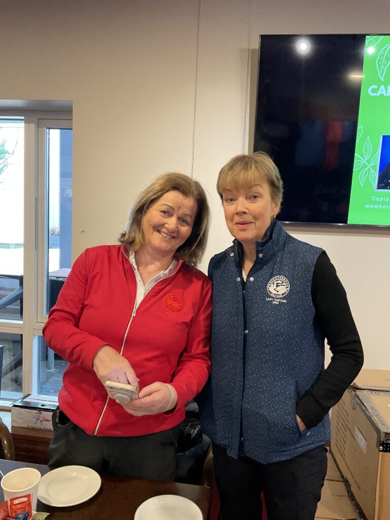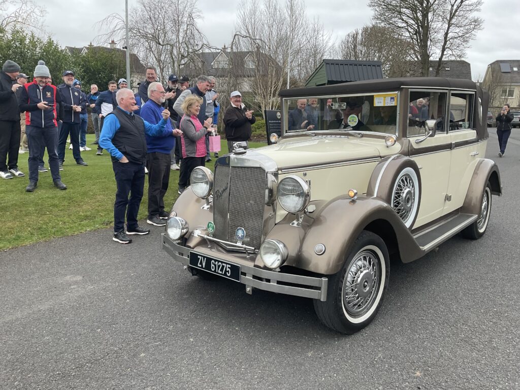 There was a great turnout of family, friends, and members to see Captains Will Murray and Jane Molony tee off the 2025 golfing year at their Captains’ Drive-In on Sunday, March 23rd. They made a grand entrance in a beautiful Regent vintage car, chauffeured by Dominic Martin. Before teeing-off, both captains planted a tree to mark the occasion and were toasted and presented with mementos of their big day. Both captains acquitted themselves well, Captain Will’s drive straying a little off course to the right while Jane struck her tee shot straight down the middle!. A nine-hole scramble competition was followed by a lovely lunch and social evening. Spring League prizes were presented and Drive-In competition winners received their prizes also.