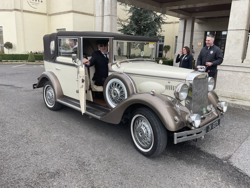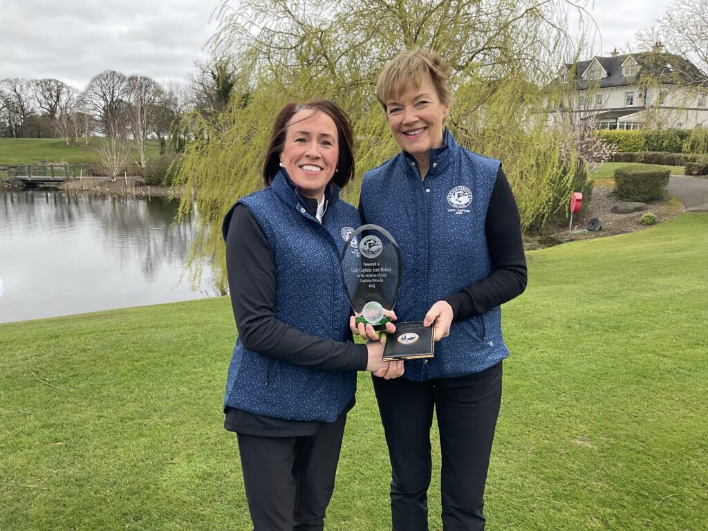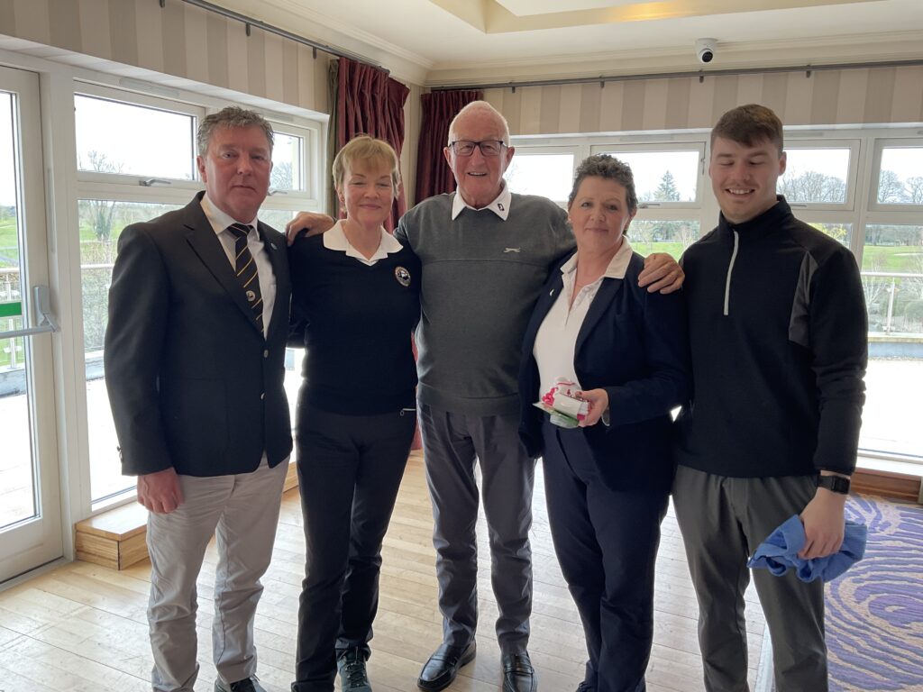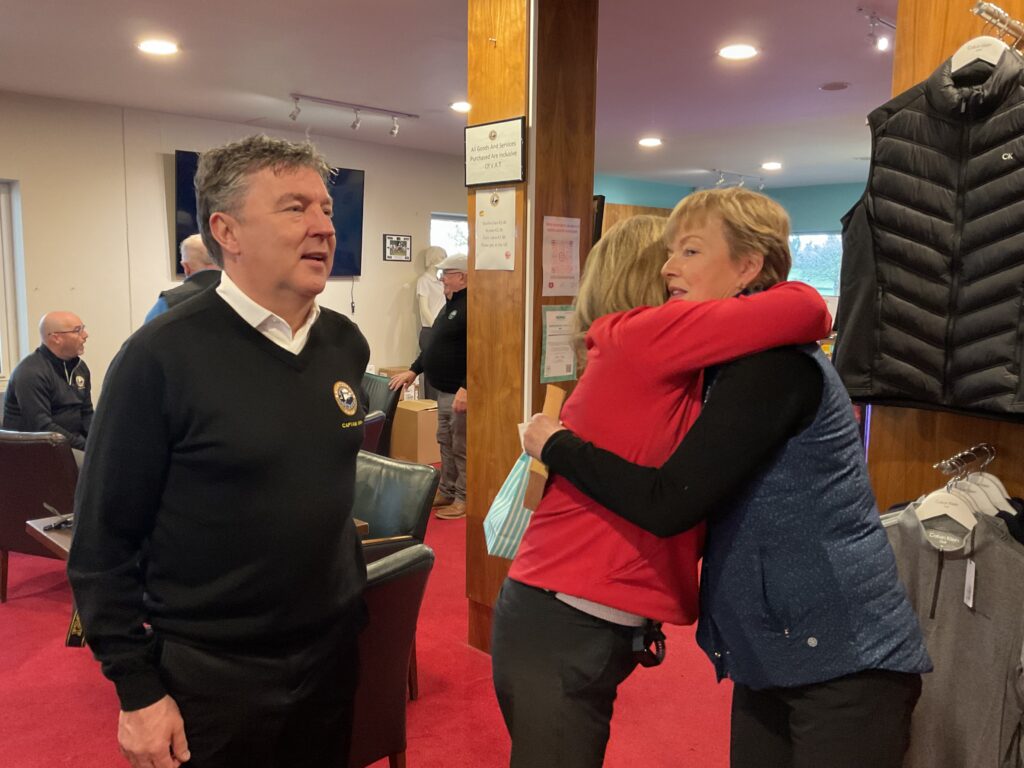There was a great turnout of family, friends, and members to see Captains Will Murray and Jane Molony tee off the 2025 golfing year at their Captains’ Drive-In on Sunday, March 23rd. They made a grand entrance in a beautiful Regent vintage car, chauffeured by Dominic Martin. Before teeing-off, both captains planted a tree to mark the occasion and were toasted and presented with mementos of their big day. Both captains acquitted themselves well, Captain Will’s drive straying a little off course to the right while Jane struck her tee shot straight down the middle!. A nine-hole scramble competition was followed by a lovely lunch and social evening. Spring League prizes were presented and Drive-In competition winners received their prizes also.