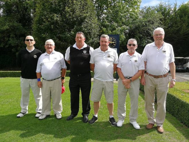 Sitting on the seat of a caddy-cart beneath the clubhouse balcony, stand in manager, Pat O’ Rourke who had played a leading role in Knightsbrooks 3/2 victory over Co. Meath GC, basked in the semi-final victory.