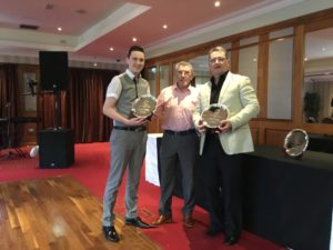 2017 Gold Medal Winner Michael Lowther with Sponsor Eugene Healy and 2017 Captain Seamus Lanney.