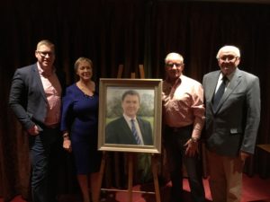 John Cusack Portrait unveiling are Jonathan & Marie Cusack with 2007 President Gerald Reilly and 2007 Men’s Captain Oliver Perkins.