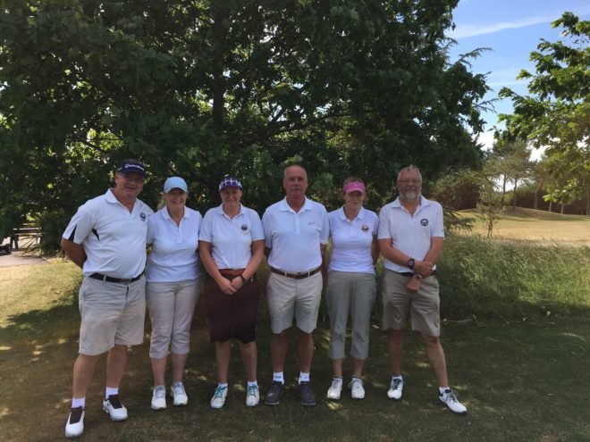 Our North Leinster Mixed team had a tremendous 3 matches to 2 win over the title holders Ashbourne GC on Sunday, July 1st. We played 3 matches away and two matches at home. Each match was very tight. First out in Ashbourne GC was Donal & Anne. They were 3 down after 10 holes but got it back to all square and were only beaten on the 18th hole. Joe & Mary lost on the 15th hole. In the third match our pairing of Peter & Marie were 2 holes up going down the 17th hole and despite them losing a ball off the tee, they still managed to win the hole to clinch an all-important 3 and 1 victory for Knightsbrook GC.
