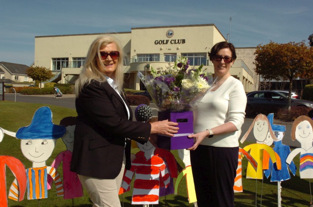 Mary Mahon Lady Vice Captain presents flowers to Lady Captain Anne to mark the big occasion