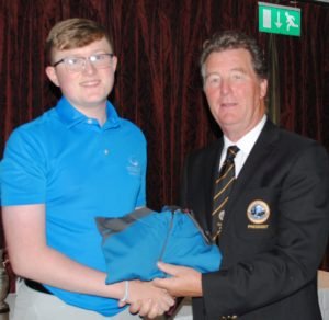 Glen Bryan receives the President’s Prize from President of Knightsbrook Golf Club, Seán Ó Díomasaigh.