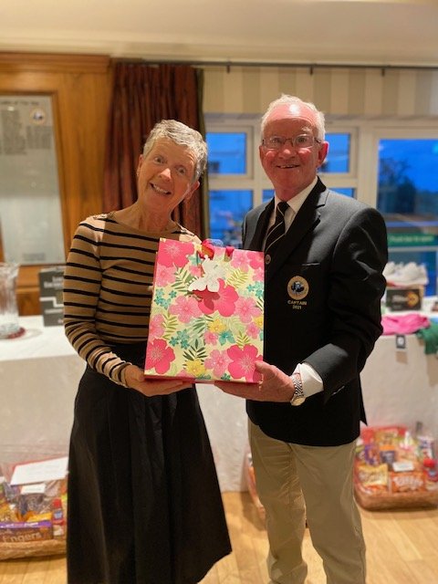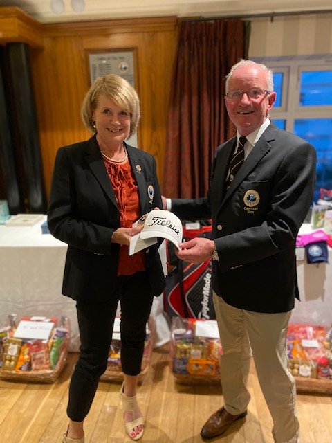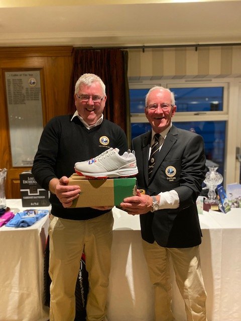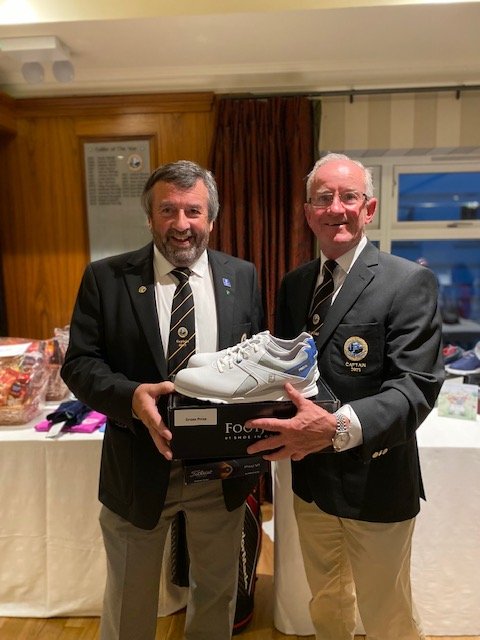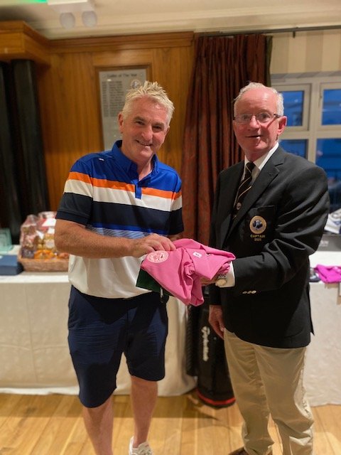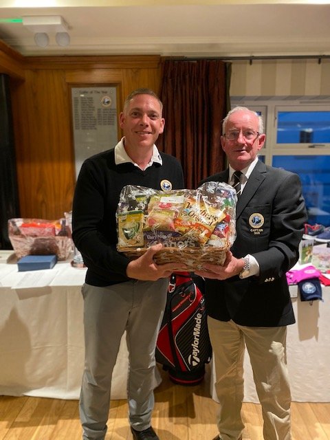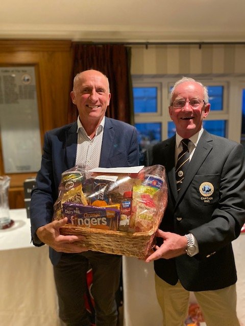 holes score. Childish giggles could be heard across the lakes as the golfers chose their favourite topping. This attraction was just one of the Captain’s innovations for his captain’s Prize day which included complimentary goody bags, Ray Glennon sponsored hampers and a very enjoyable appropriately socially distanced meal and presentation. Captain Ger received a standing ovation for his work during the year and he paid tribute to all committee members for their dedication and hard work during the second Covid 19 year to ensure that members had a very successful and enjoyable year. He paid tribute to Mr Peter Igoe’s “inspirational leadership, hard work and investment in the golf course over recent years, making Knightsbrook one of the premier golfing resorts in the country” He thanked the golf shop staff including Ben and Adam for their work and also the  Director of Golf, Kate Jones for her courtesy and willingness to help. “We are very fortunate to have a greenkeeper of the calibre of Ronan Carey”, the Captain continued, “he can undertake all kinds of tasks from maintaining the greens to driving a digger or manoeuvring the newly acquired amphibious vehicle” Mr Reilly thanked him and his team for their work.